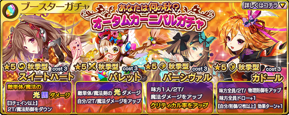 ブースターガチャ オータムカーニバル 登場 乖離性ミリオンアーサー攻略wikiまとめ Gamerch